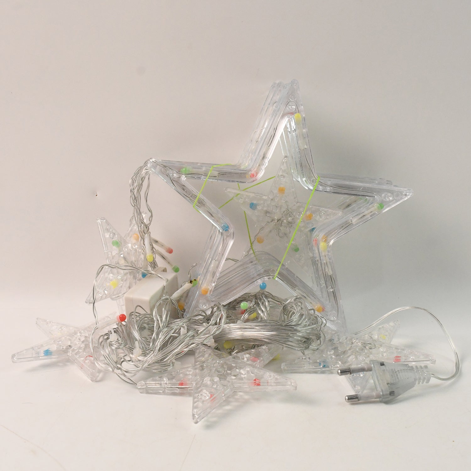 3386 12 Stars LED Curtain String Lights with 8 Flashing Modes for Home Decoration, Diwali & Wedding LED Christmas Light Indoor and Outdoor Light, Festival Decoration (Multicolor / With Box)
