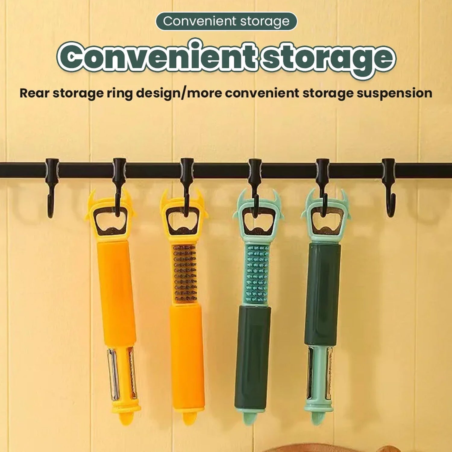 - VERSATILE FUNCTIONALITY - With this vegetable peeler, you can peel and clean different types of fruits and vegetables, as well as grate, open bottles and do more with its 7-in-1 design that simplifies and improves your work in the kitchen.