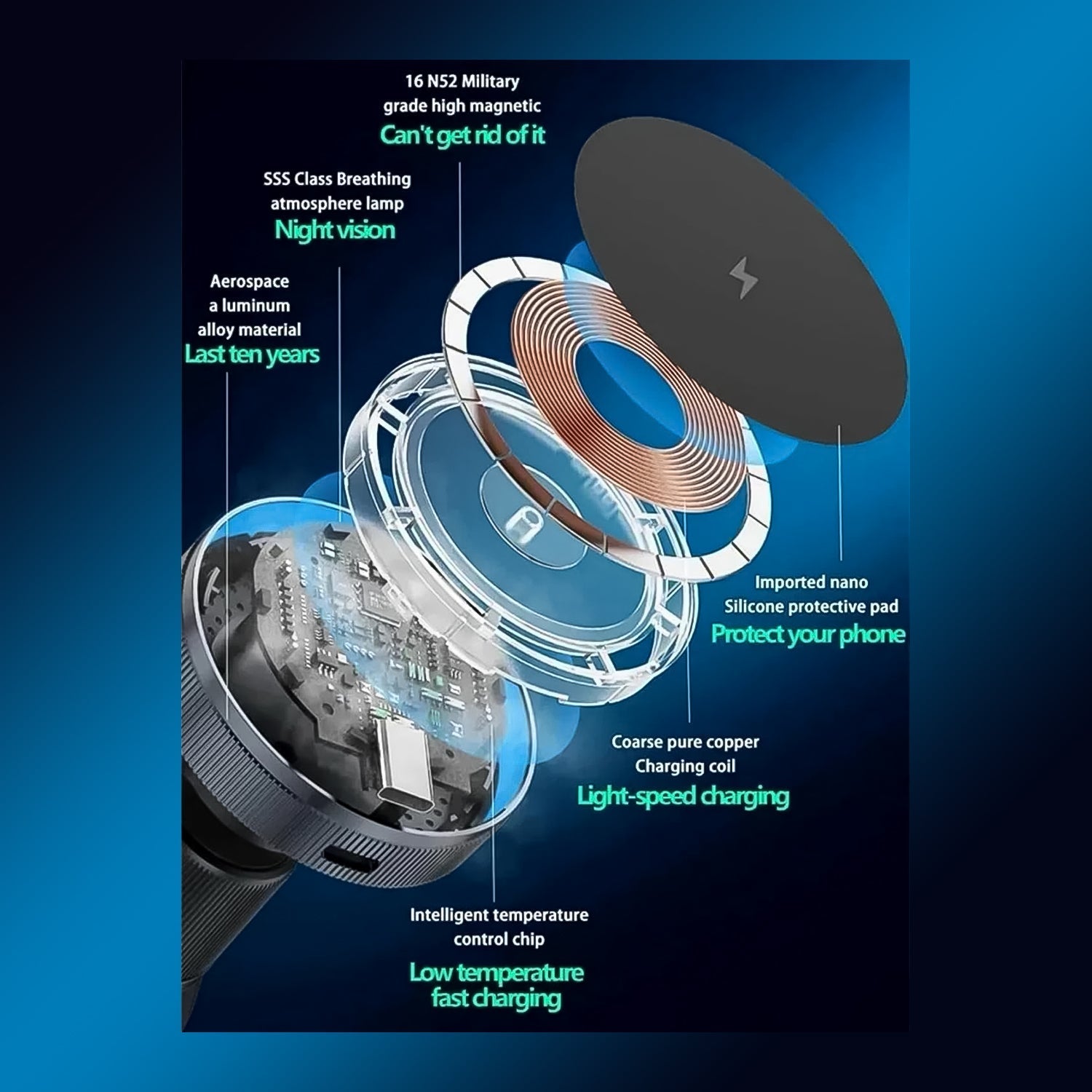 - Lightning Fast Charge - Experience the convenience of fast, energy-efficient wireless charging on the go. for Magnetic Phone Mount Wireless Automobile Charger features a Grade 5a Fast Charging chip, ensuring your smartphone stays secure, fully charged, and ready for use. This car cell phone holder and charger allows you to keep your device powered up and within reach.