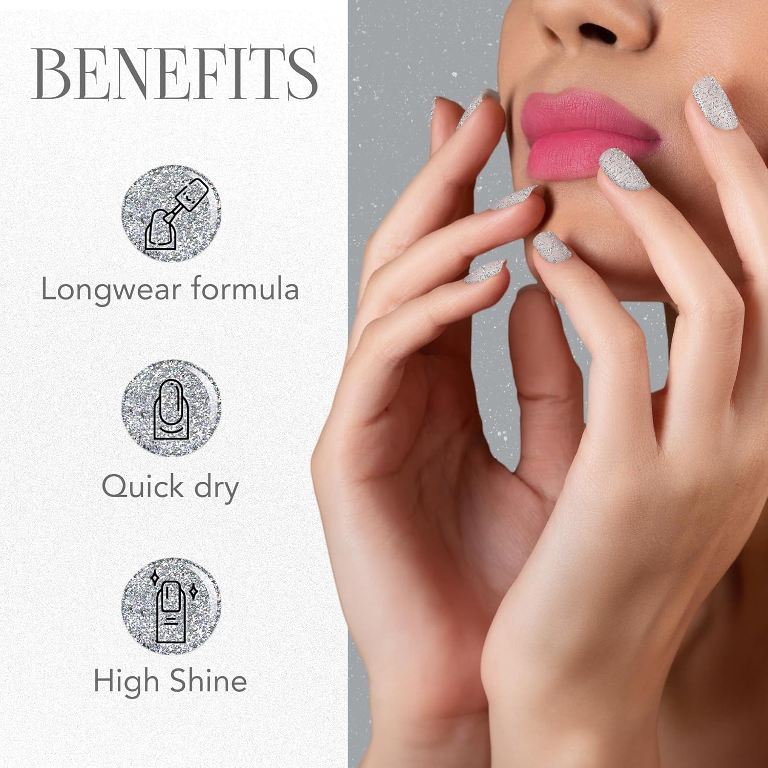 OG Beauty Silver Moonlight Starlet Glitter Nail Paint 10 ML – Long Lasting Quick Dry Sparkling Nail Polish with Shiny Glitter Finish for Party & Festive Look