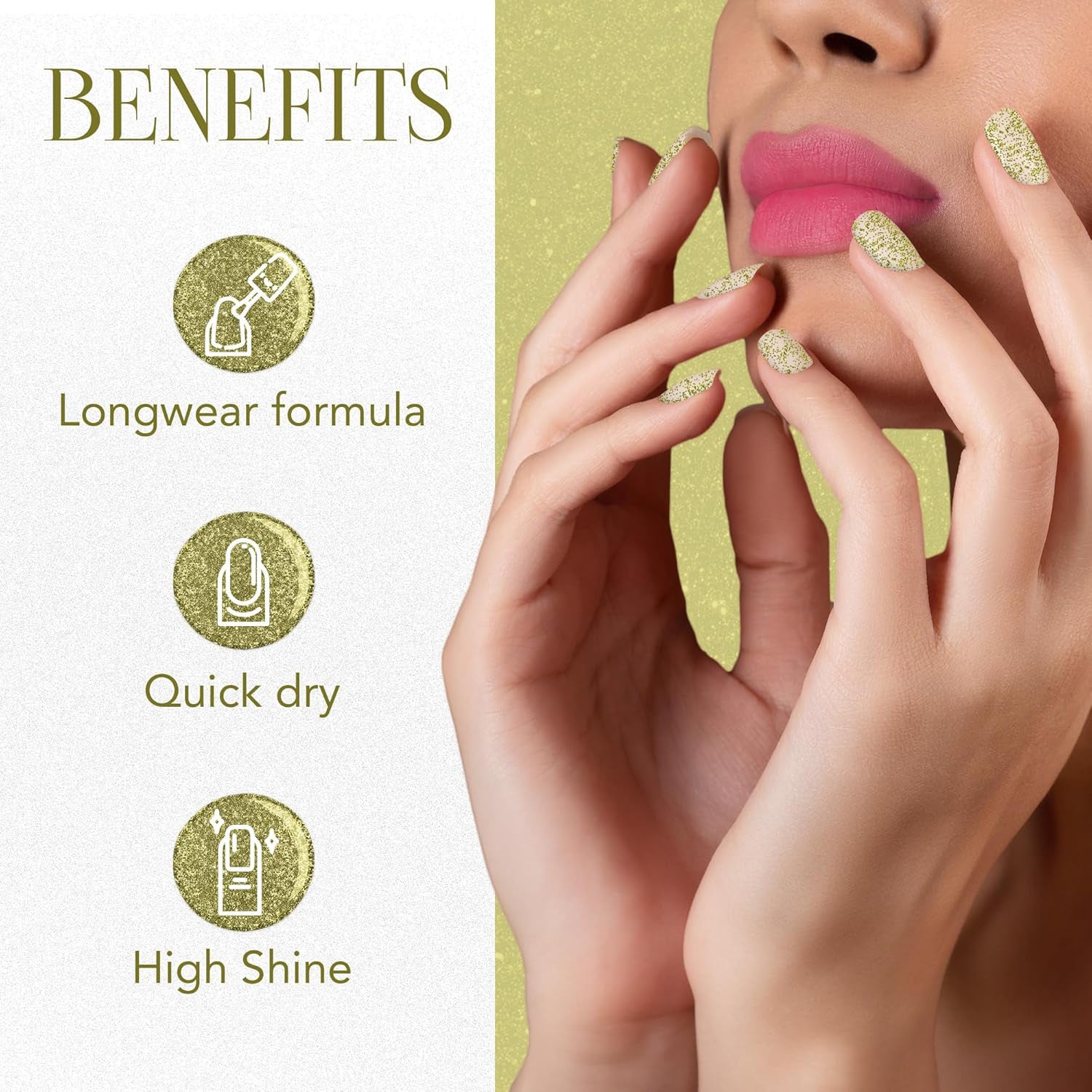 OG Beauty Sunshine Gold Starlet Glitter Nail Paint 10 ML – Long Lasting Quick Dry Sparkling Nail Polish with Shiny Glitter Finish for Party & Festive Look