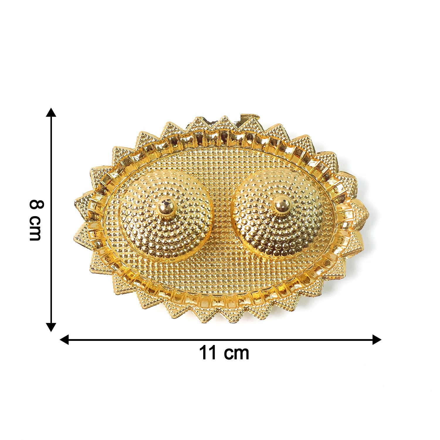 Grace your mandir or festive setup with this elegant gold-finish Pooja Kumkum/Roli–Chawal Set. The set includes a beautifully carved tray with two lidded bowls for roli, chawal, haldi, akshat, sindoor or chandan. Crafted from sturdy, lightweight material with a metallic sheen, it adds a luxurious touch to daily worship, festivals and special occasions. Easy to clean and display, it’s also a thoughtful return gift for pooja ceremonies and housewarmings.