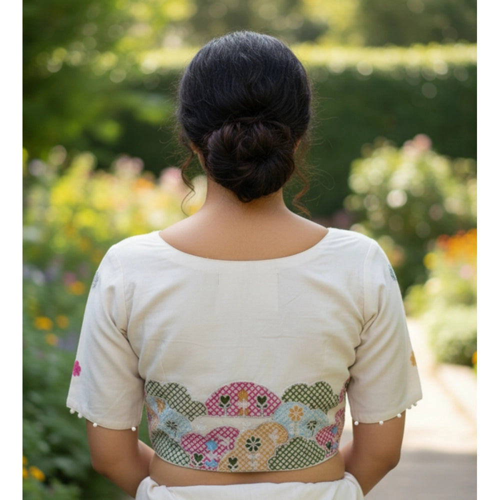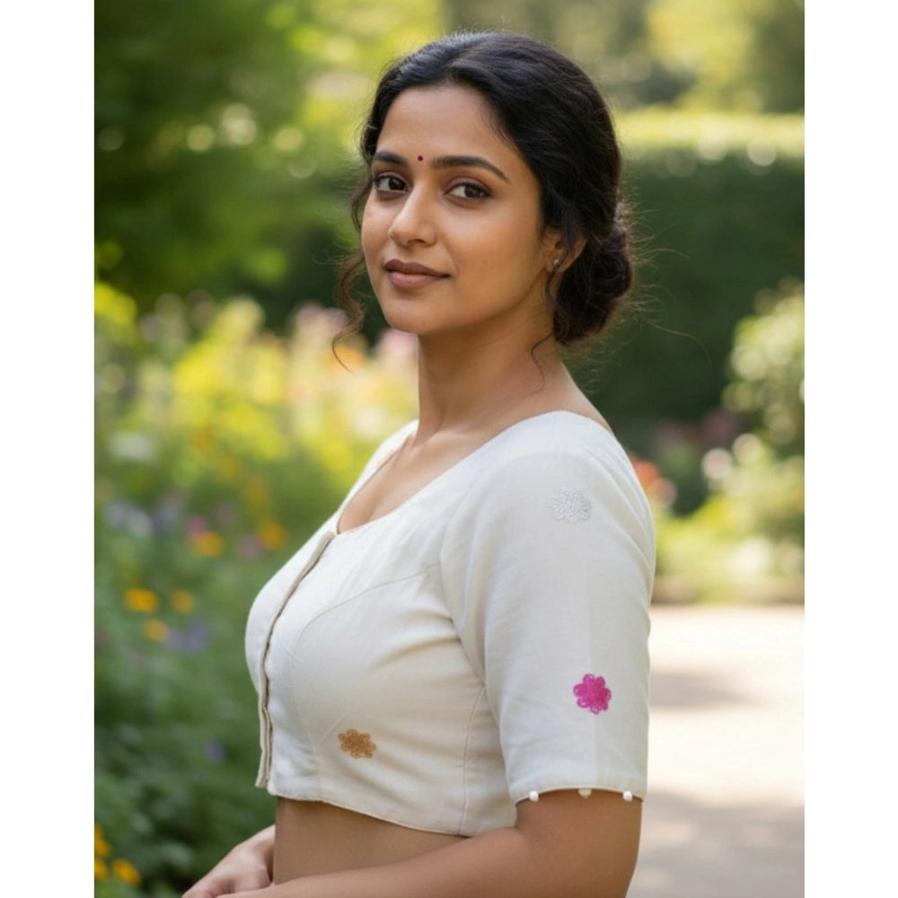 Generic Women's Cambric Cotton Round Neck Padded Blouse (White, 38 Ready Size (Self-Alterable 36–40)