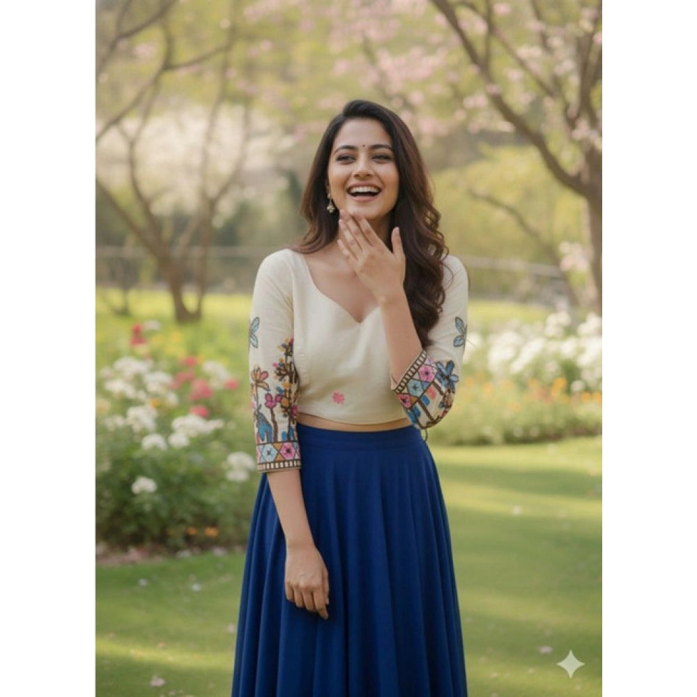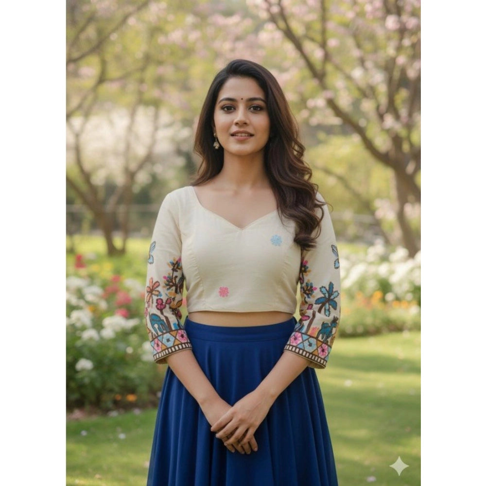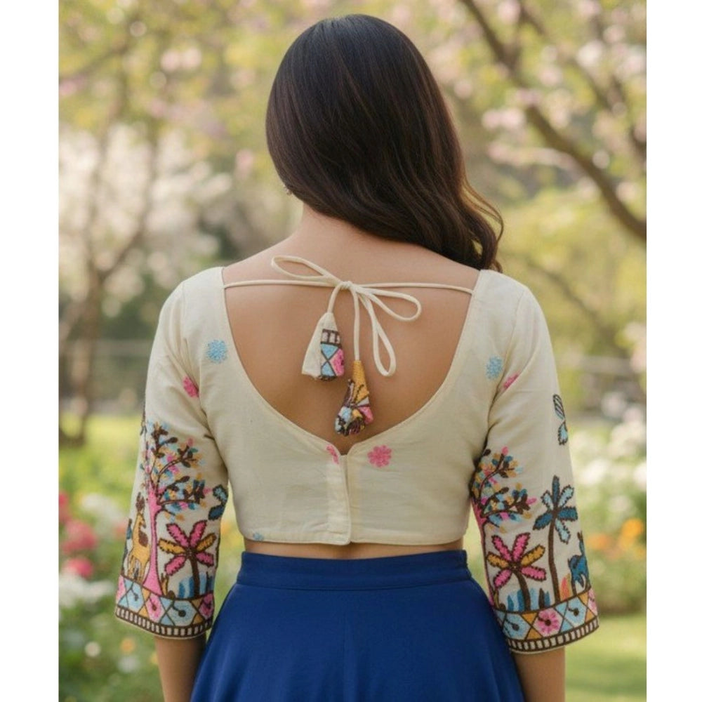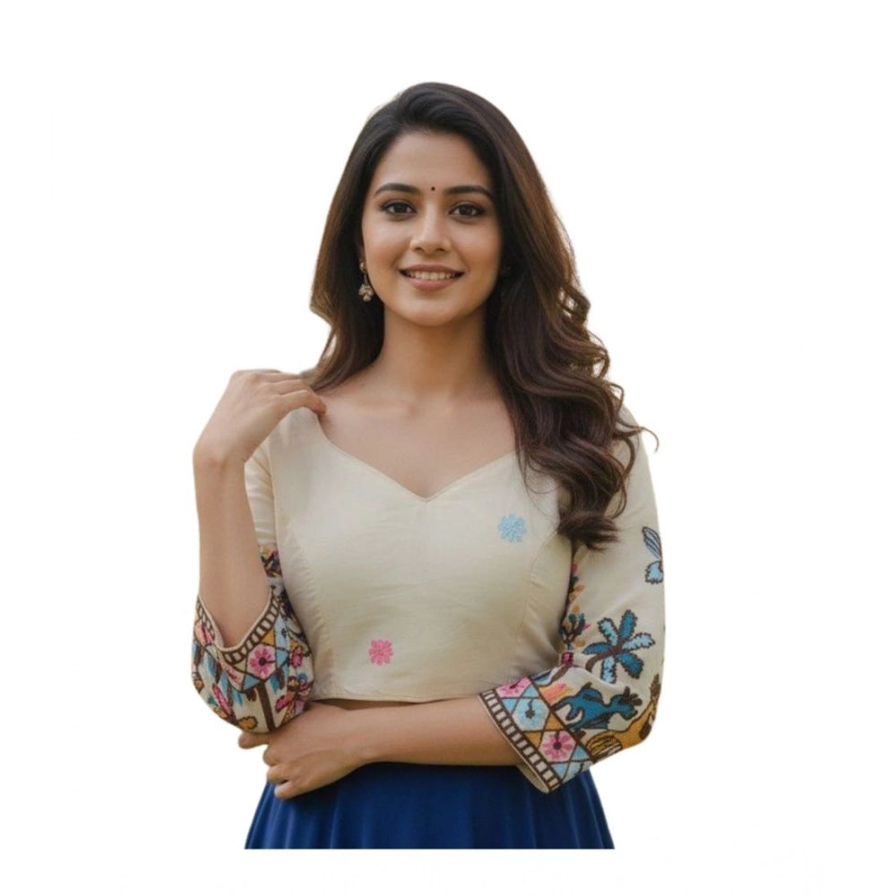 Generic Women's Cambric Cotton Round Neck Padded Blouse (White, 38 Ready Size (Self-Alterable 36–40)