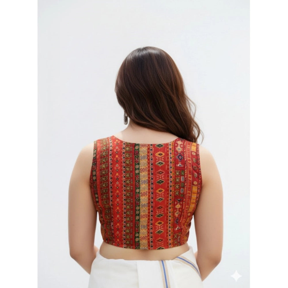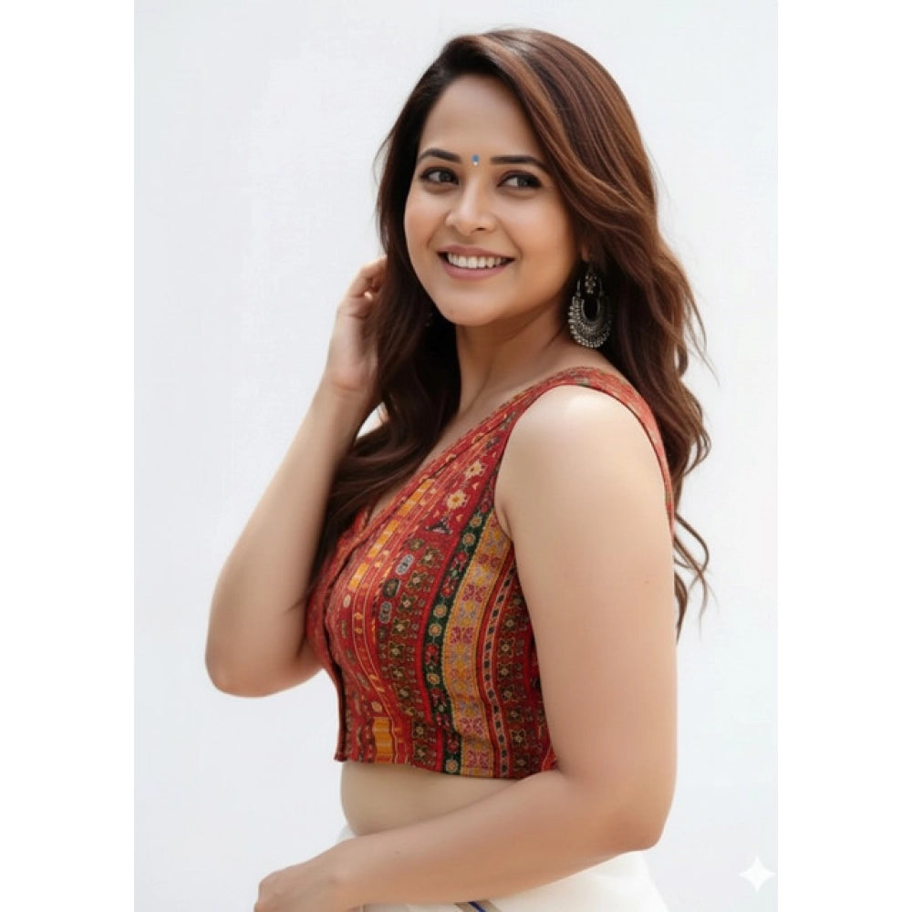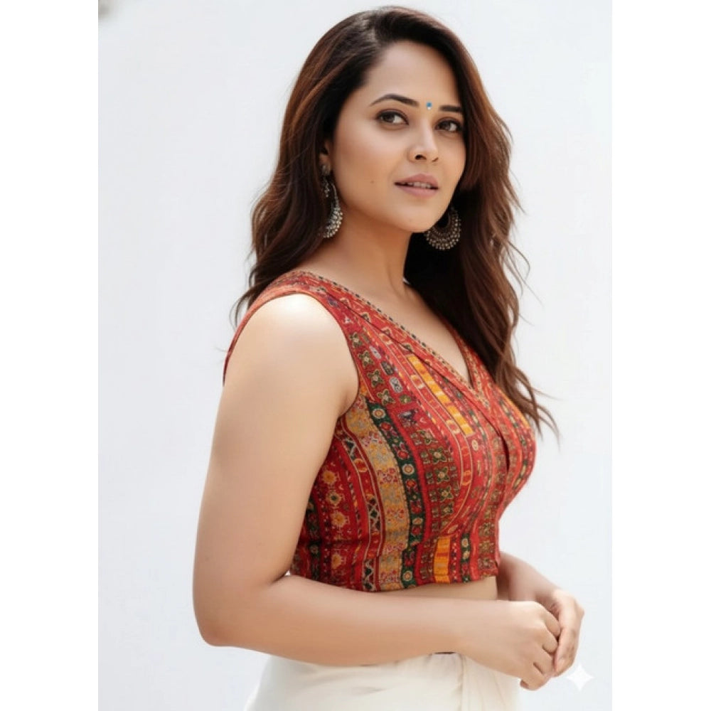 Generic Women's Cambric Cotton V Neck Padded Blouse (Red, 38 Ready Size (Self-Alterable 36–40)