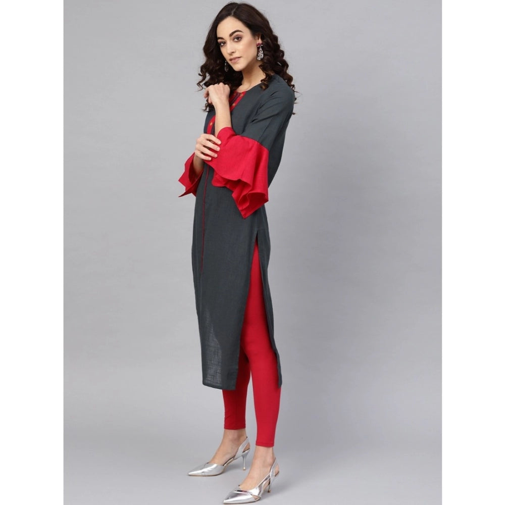 Generic Women's Casual Bell Sleeves Mirror Work Cotton Slub Kurti (Grey)