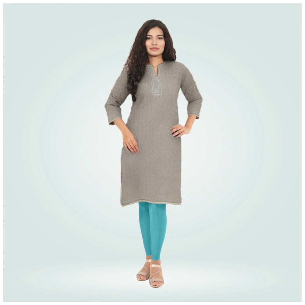 Generic Women's Cotton Blended Solid Shimmer Ankle leggings (Blue)
