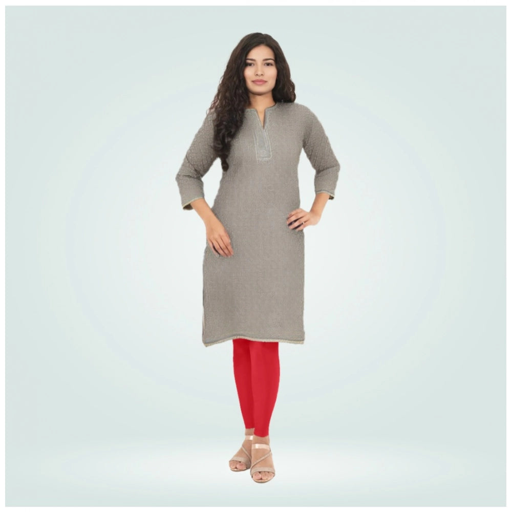Generic Women's Cotton Blended Solid Shimmer Ankle leggings (Red)