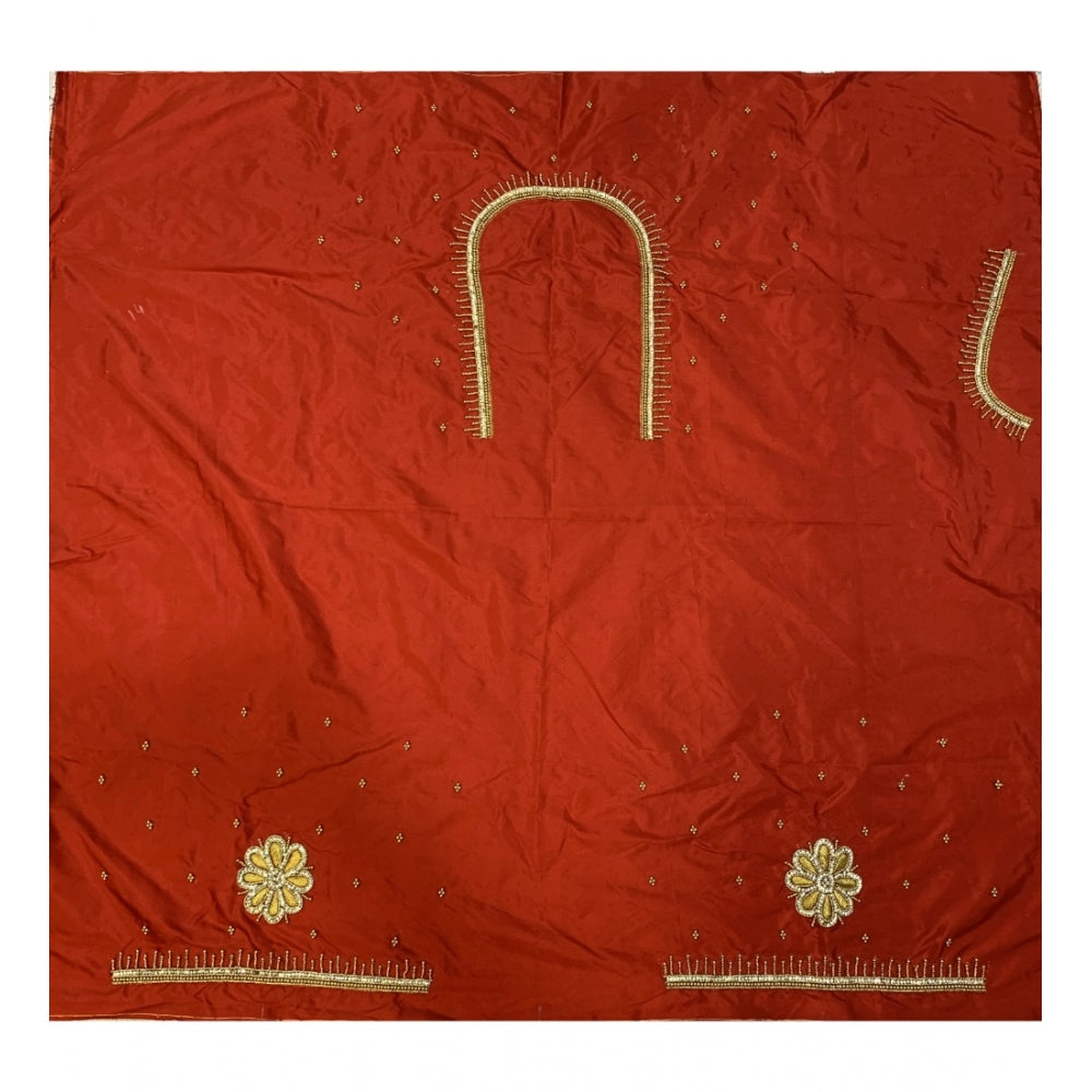 Generic Women's Cotton Silk Printed Unstitched Blouse Piece (Red, 80-100 cm)