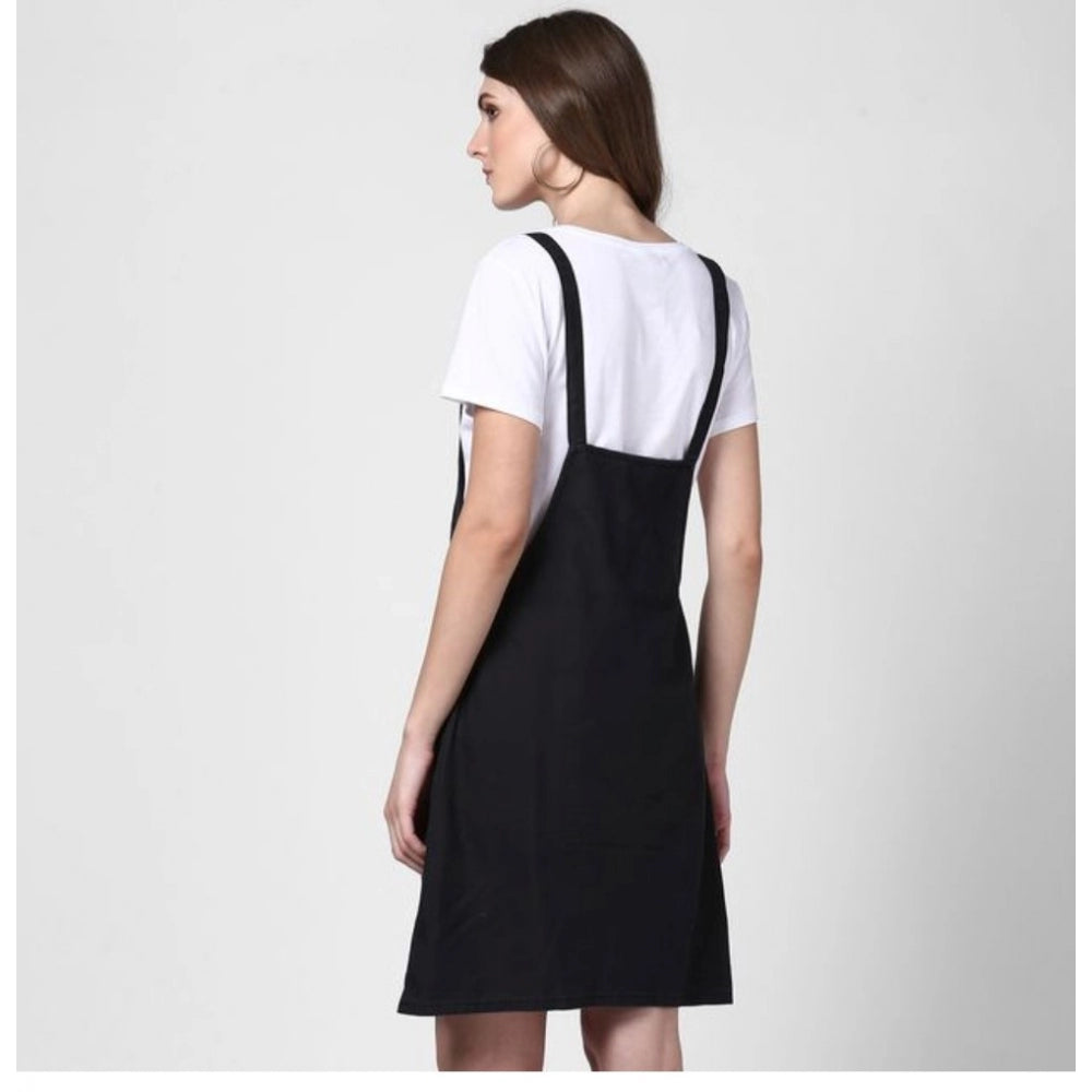 Generic Women's Denim Solid Shoulder Straps Above Knee Dungaree (Black)