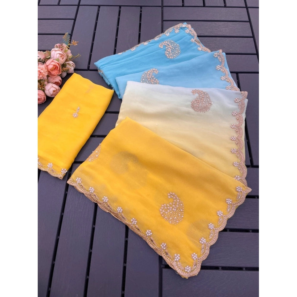 Generic Women's Digital Printed Geogette Saree With Unstitched Blouse (Yellow, 5-6 Mtrs)