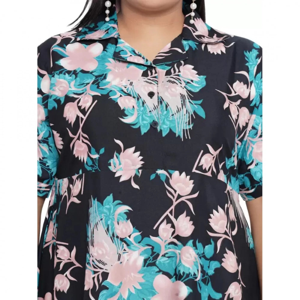 Generic Women's Fit And Flare Green Dress (Color:Multicolor, Material:Polyester)