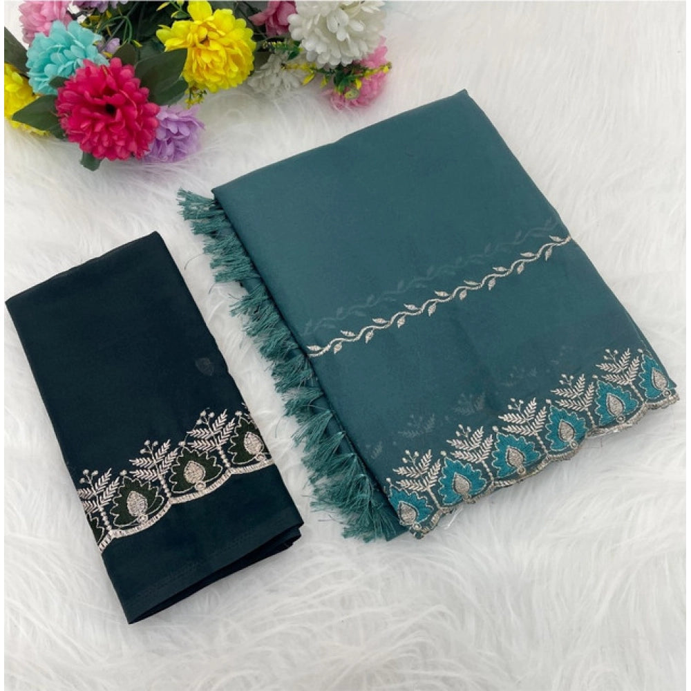 Generic Women's Georgette Embroidered Saree With Unstitched Blouse 5.5Mtr (Blue)