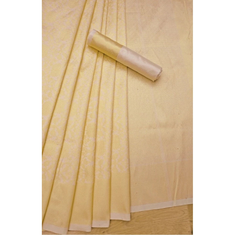 Generic Women's Litchi silk Printed Saree With Unstitched Blouse (Gold)
