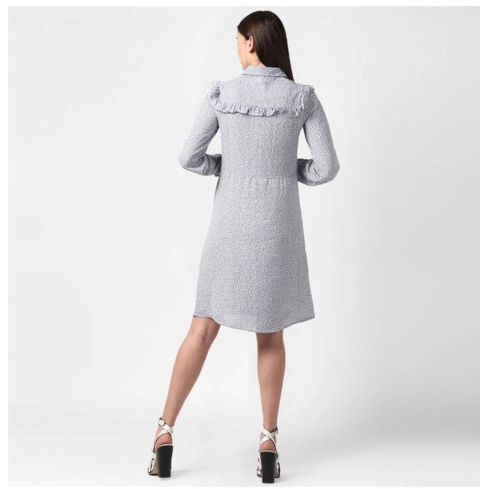 Women's Polyester Floral Collar Neck Long Sleeves Dress