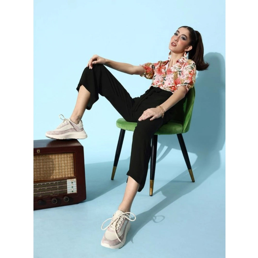 Generic Women's Polyester Printed 3/4th Sleeve Jumpsuit (Peach - Black)