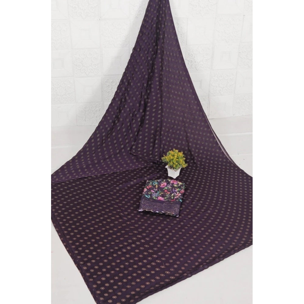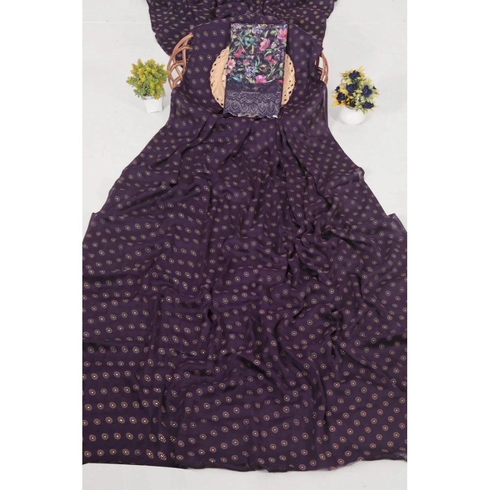 Generic Women's Printed Brasso Saree With Unstitched Blouse (Magenta, 5-6 Mtrs)