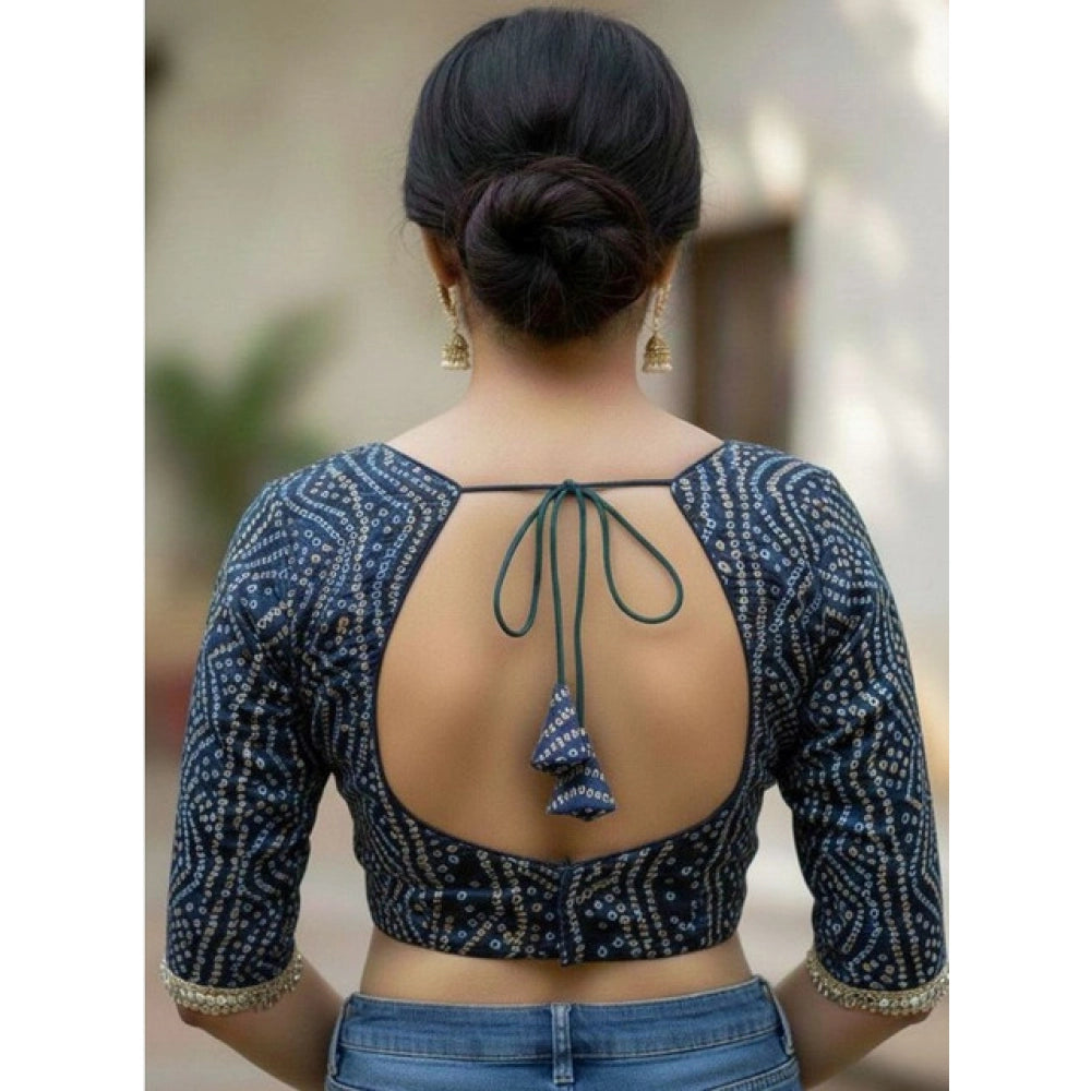 Generic Women's Rayon Sabyasachi Style Round Neck Padded Blouse (Blue, 38 Ready Size (Self-Alterable 36–40)
