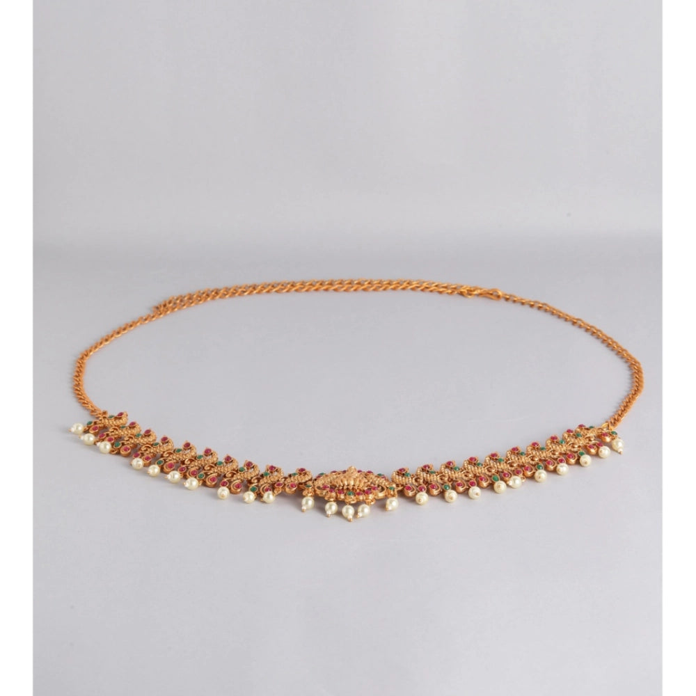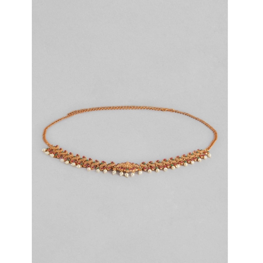 Generic Women's Rose Gold Plated Alloy Hip Belt Kamarband (Red & Green)