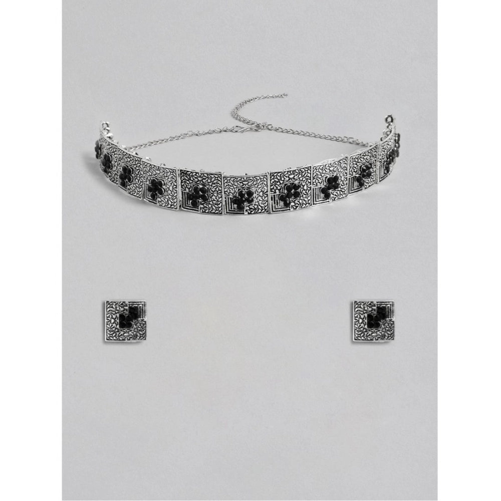Generic Women's Rose Gold Plated Alloy Necklace & Earings Set (Silver & Black)