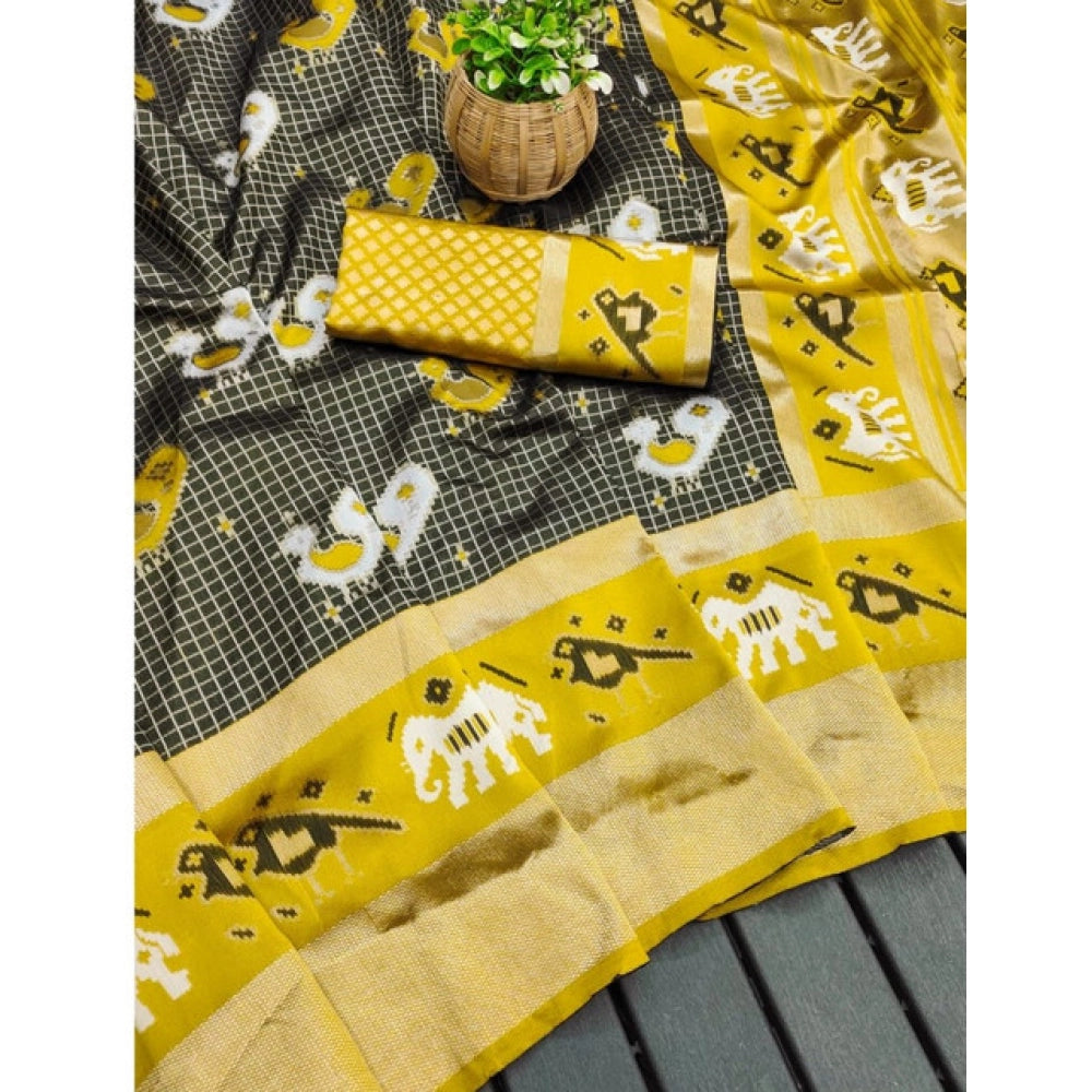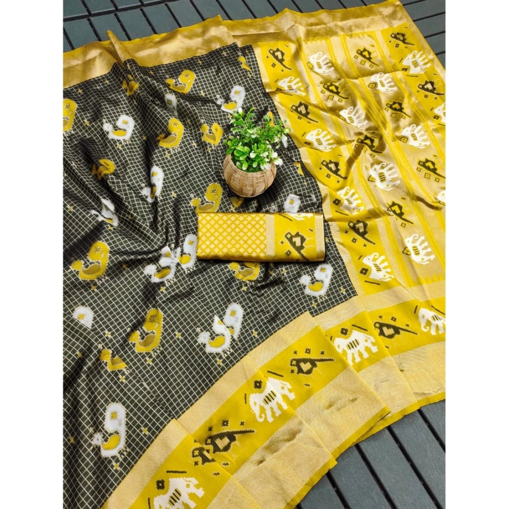 Generic Women's Soft Litchi Silk Jacquard Work Saree With Unstitched Blouse 5.5Mtr (Black)