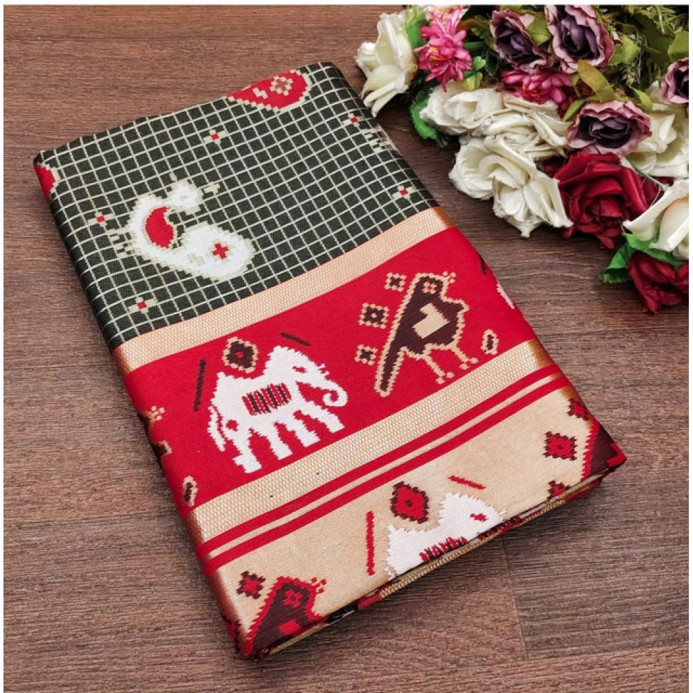 Women's Soft Litchi Silk Jacquard Work Saree With Unstitched Blouse