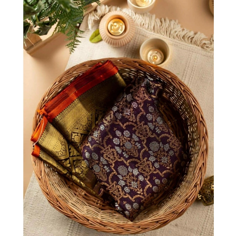 Generic Women's Soft Litchi Silk Jacquard Work Saree With Unstitched Blouse 5.5Mtr (Purple)